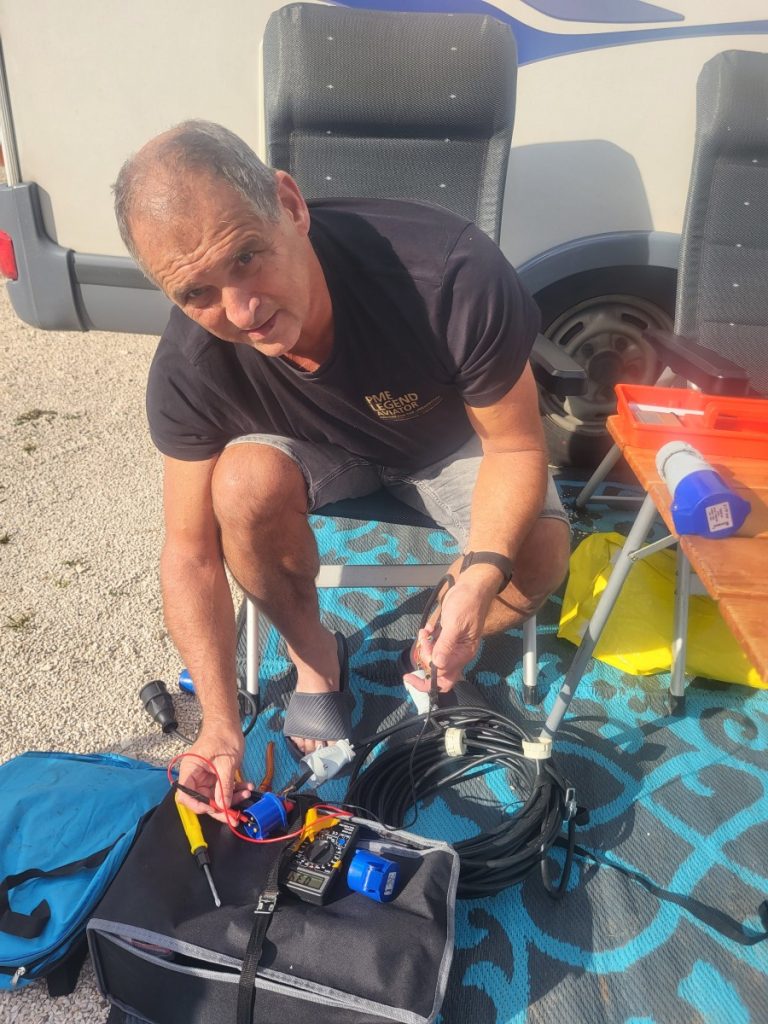 Tot rond 15.30 uur op het strand gebleven en toen koffie op ons plaatsje. Ik heb nog geprobeerd een stroomkabel te repareren maar is vooralsnog niet gelukt.